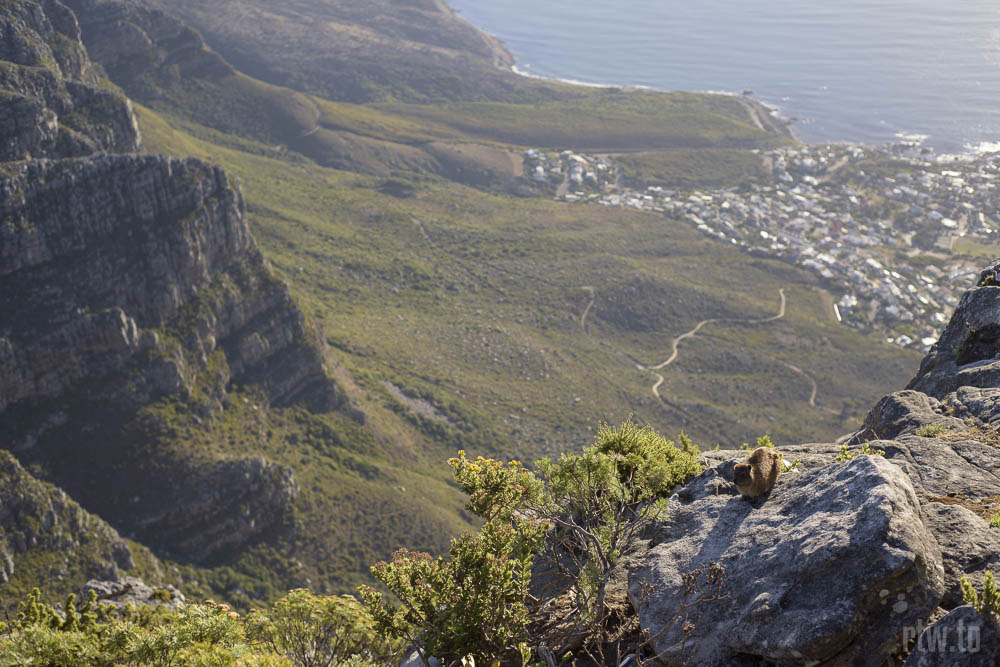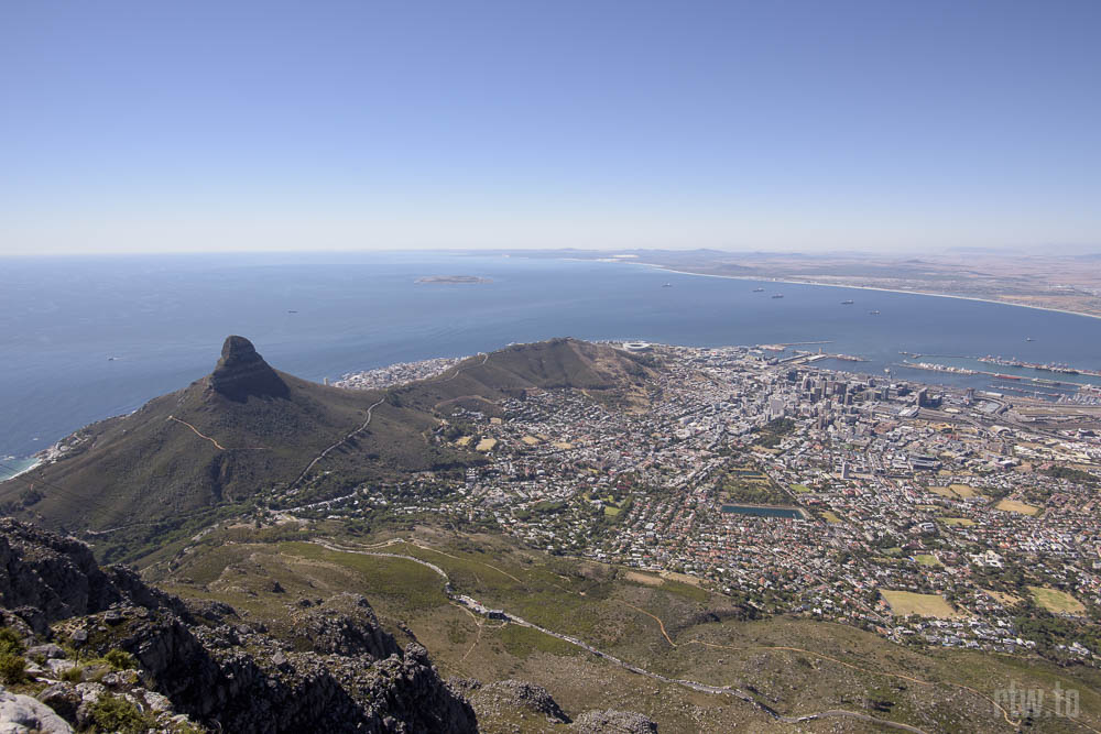 Because I woke up late, I took the cable car up Table Mountain. The mountain is named so because it’s top is flat, as you can see from the photographs above (from Signal Hill and Lion’s Head).
