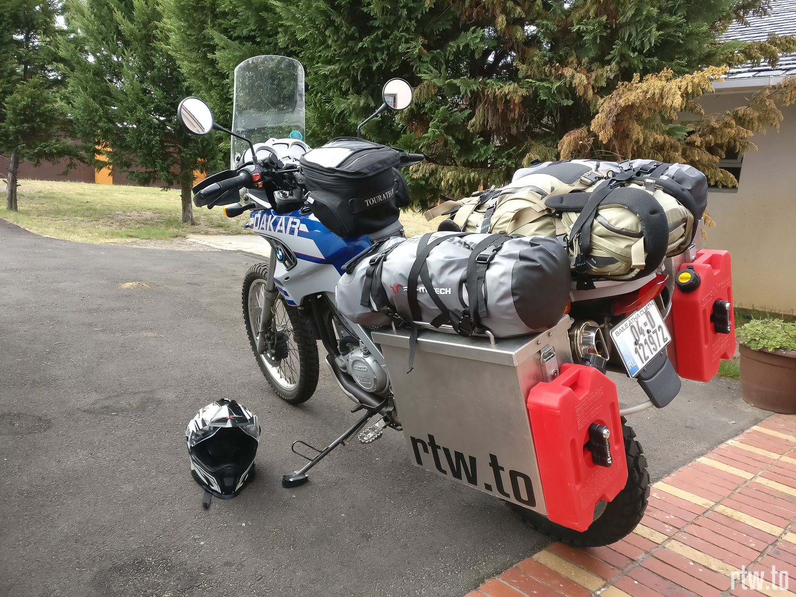 On March 8 at 8:00 local Cape Town time I had everything packed on the motorcycle and I was ready to go. Even though the amount of stuff I had with me was overwhelming, I found it funny that everything was a little too clean. My jacket, pants and helmet were new, the side cases didn’t have any scratches and the dry bags had no dirt on them.