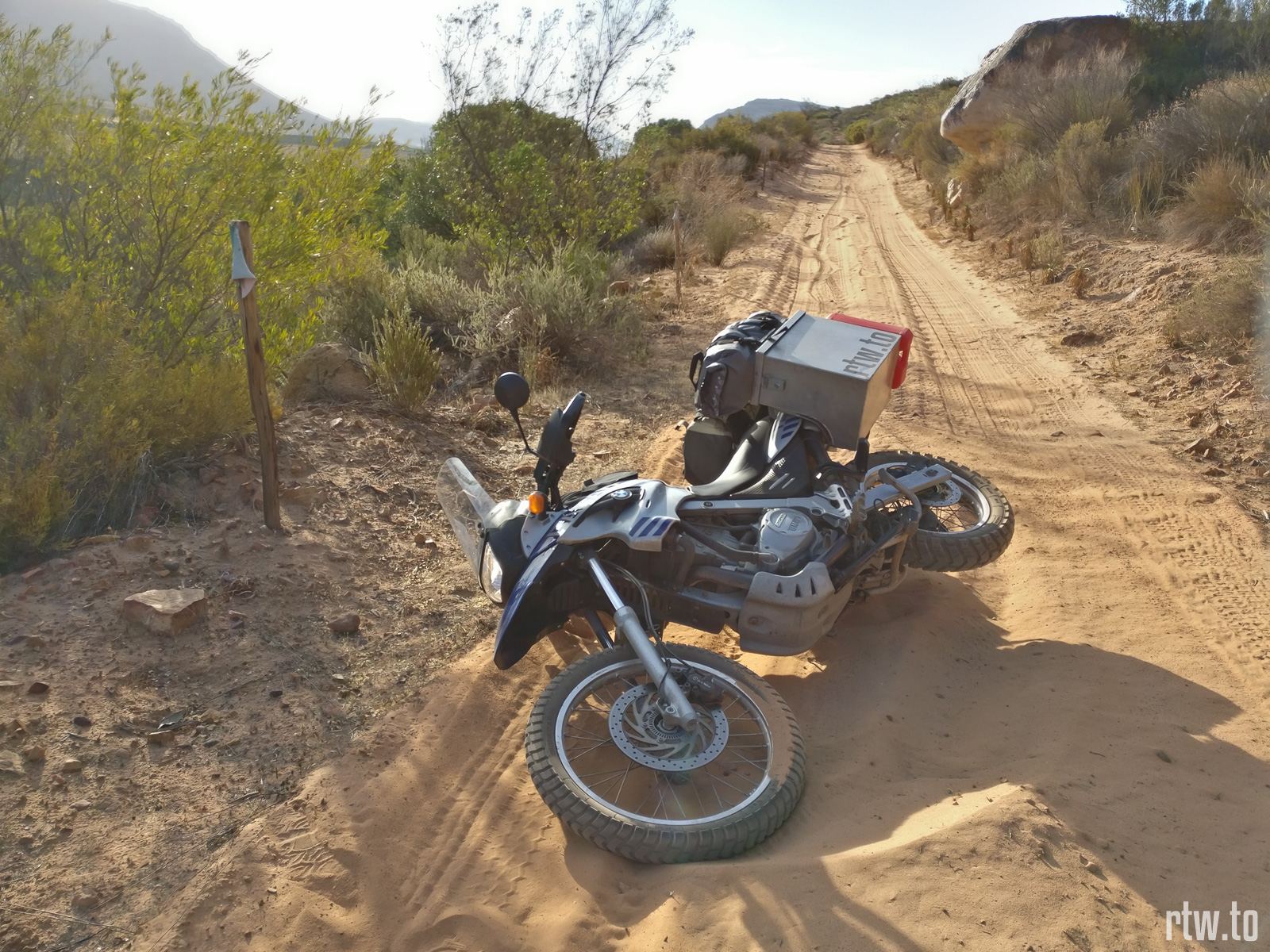 The impeccable roads and fantastic scenery have been another reason as to why the day was memorable. After a short off-road section, I reached the most southern tip of Africa: Cape Agulhas. I wasn’t amazed, as it was flat and there was only a monument to acknowledge the fact. Some twistiest brought the first issue of the trip, something that I had never felt before: front wheel wobble while passing a truck on some twisties. I only got a small scare from it and I enjoyed the rest of the road up to the Silwerstroom campsite, where I got to spend the night.
