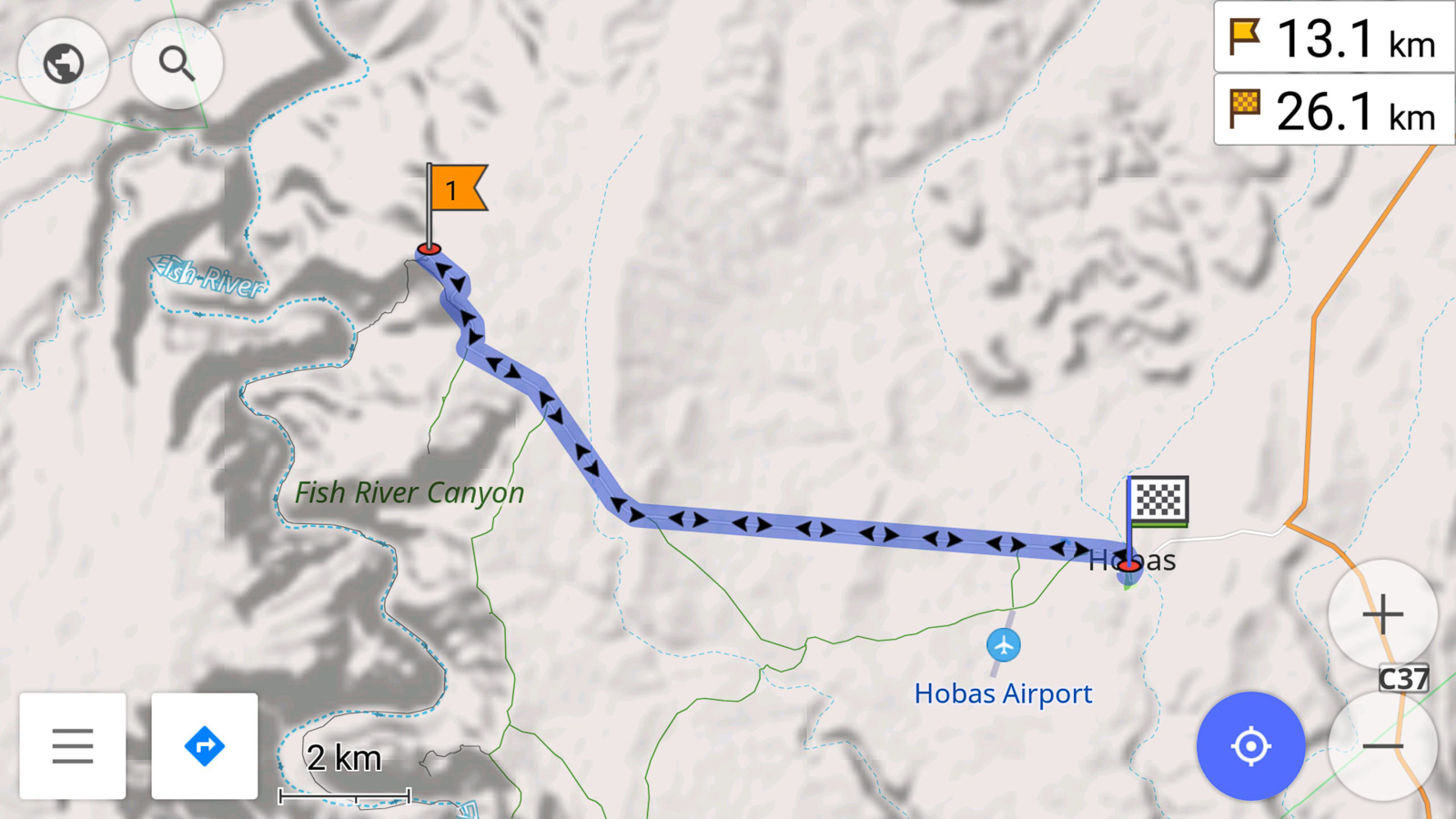Did the planning for the next day with fuel. Only around 190 km remaining, Luderitz 400 km away. Found a gas station 15 km away, will see if it is real or not.
